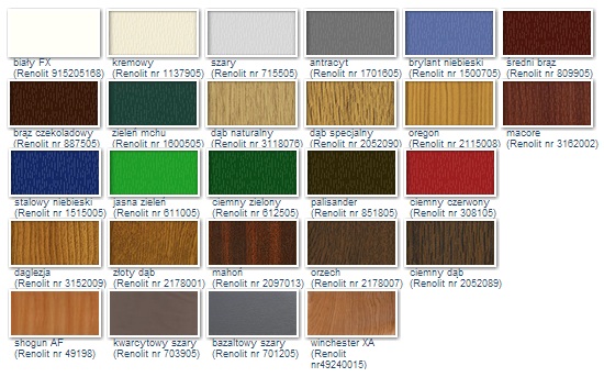 - Bogata kolorystka dostępna w gamie 27 folii Renolit.